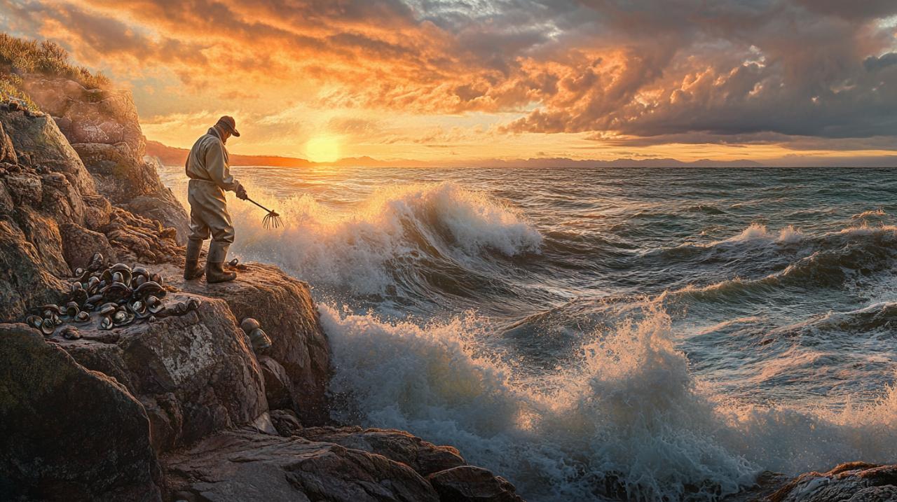 Le timing de la récolte dépend étroitement du rythme des marées qui régit l'accessibilité des zones rocheuses. La période optimale se situe généralement dans les deux heures qui précèdent et qui suivent la basse mer, lorsque les rochers émergent progressivement puis commencent à être recouverts. Cette fenêtre temporelle limitée exige une organisation rigoureuse et une bonne connaissance du terrain. Les pêcheurs expérimentés privilégient les jours de coefficient élevé, mais évitent toutefois les périodes de très gros coefficients qui rendent les conditions trop dangereuses. L'observation des vagues et de leur intensité permet d'ajuster le moment idéal pour intervenir en toute sécurité. La réglementation encadre strictement cette activité en autorisant la pêche seulement huit jours par mois maximum et en interdisant toute récolte pendant les mois de juillet et août, période cruciale pour la reproduction de l'espèce. Cette restriction contribue à préserver la ressource marine tout en tenant compte des impératifs biologiques. Les professionnels comme Jolan Gourin, qui pêche une journée par semaine de Quiberon à Belle-Île, sélectionnent méticuleusement les spécimens de sept à huit centimètres pour garantir la qualité et le respect des normes.
